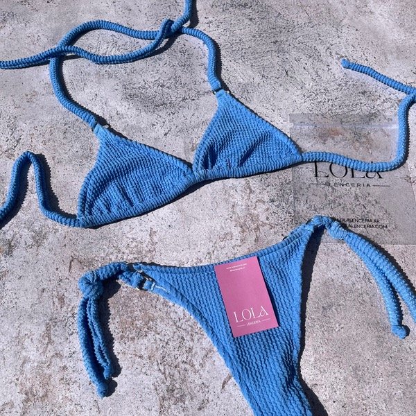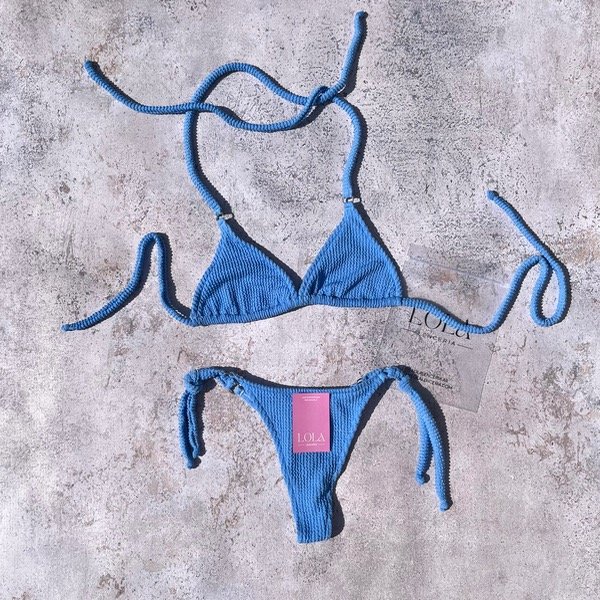 Corpiño triangulo movible, con apertura para tazas (no incluídas). Tiras largas, lo que permite diversas formas de atar.