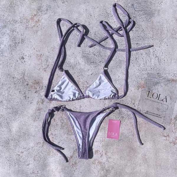 Corpiño triangulo movible, con apertura para tazas (no incluídas). Tiras largas, lo que permite diversas formas de atar.