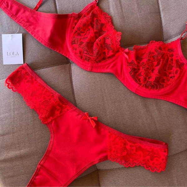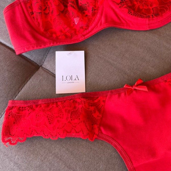 Conjunto Algodón y puntilla con aro 495 Rojo